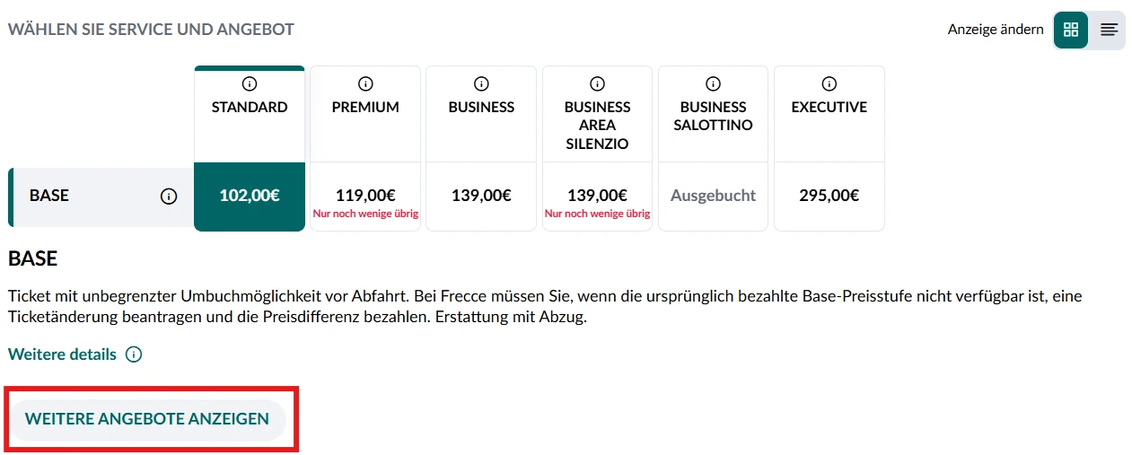 Bei Kurzstrecken im Le Frecce kann der Normaltarif günstiger als FIP reduzierte Tickets sein.